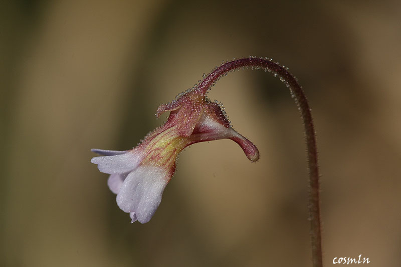 Dintre plantele carnivore Pinguicula lusitanica, o alta specie cu o floare mai particulara si frunze cu vinisoare rosii.