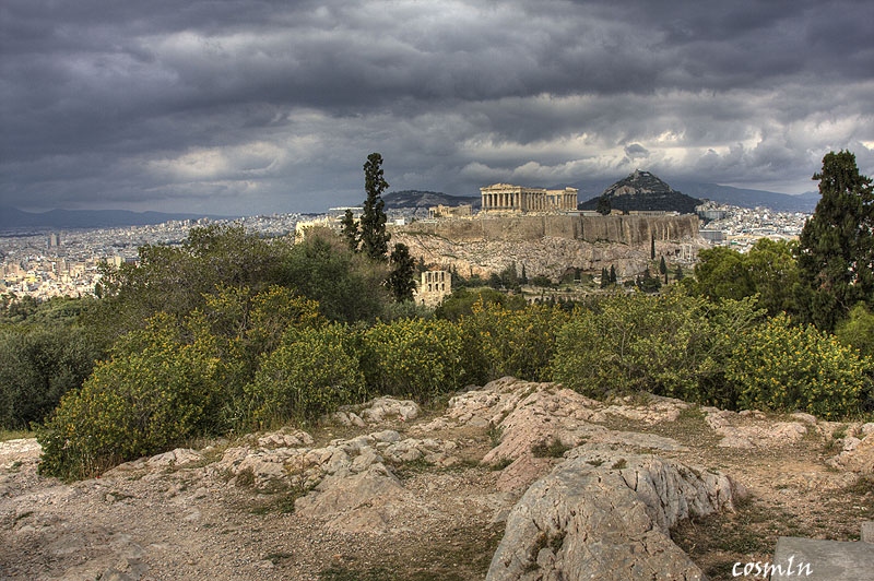 Dupa plimbarea prin Gradinile Nationale am decis sa mergem pe Colina Filopappos unde e mai multa salbaticie si de asemenea vedere spre Acropolis. Cateva fotografii facute de acolo spre Acropole si peste Atena/Pireu.