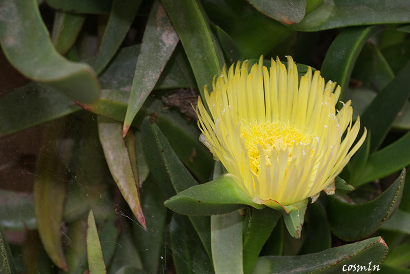– o alta planta, Carpobrotus edulis, originara din Africa de Sud si naturalizata pe acolo (am gasit exemplare si in natura mai ales pe langa mare pe stanci – de obicei in culoare violeta).